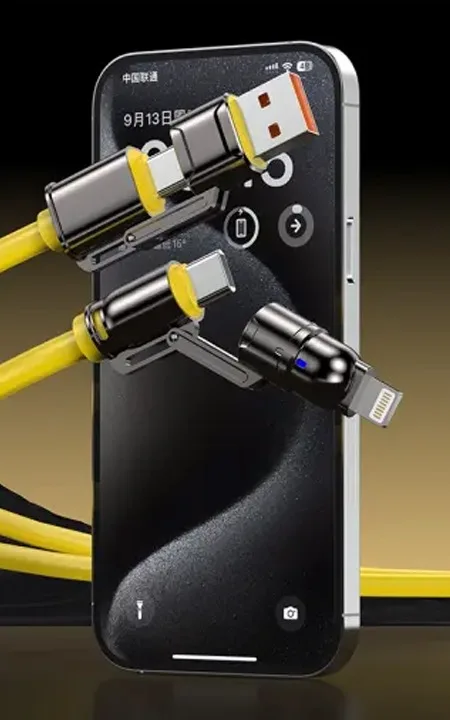 240W square Data Cable 4-in-1 Intelligent Screen Display Nylon Woven Fast Charging Data Cable